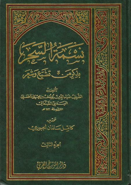 كتاب: نسمة السحر بذكر من تشيع وشعر - ج1ج2ج3 المؤلف: الشريف ضياء الدين يوسف بن يحيى الحسني اليمني الصنعاني عدد الصفحات: 582\560\679 الجزء الاول الجزء الثاني الجزء الثالث