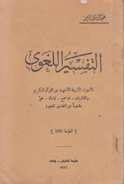 العنوان الكامل: التفسير اللغوي، الأجزاء الأربعة الأخيرة من القرآن الكريم
