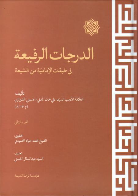 كتاب: الدرجات الرفيعة في طبقات الإمامية من الشيعة – جزئين المؤلف: السيد علي خان المدني الشيرازي عدد الصفحات: 816\1546 الجزء الاول الجزء الثاني
