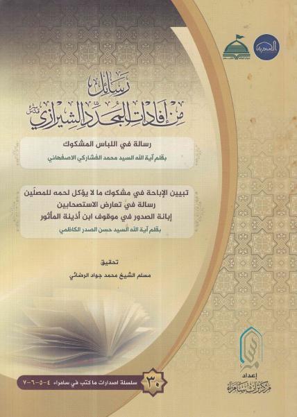 كتاب: رسائل من إفادات المجدد الشيرازي، تبينن الإباحة في مشكوك ما لا يؤكل لحمه المؤلف: السيد حسن الصدر عدد الصفحات: 160