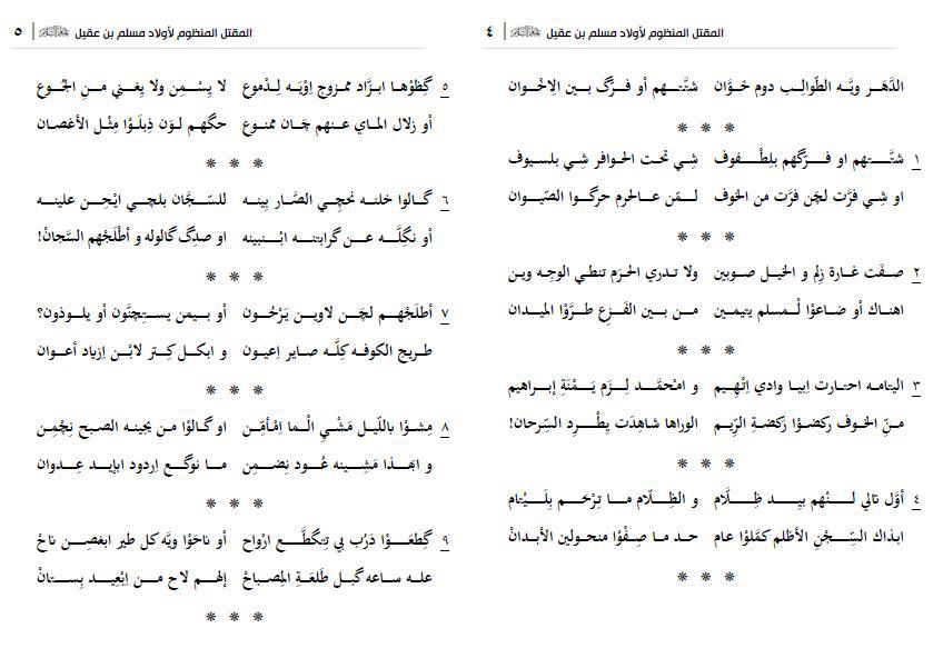 كتاب: المقتل المنظوم ، لأولاد مسلم بن عقيل عليهم السلام