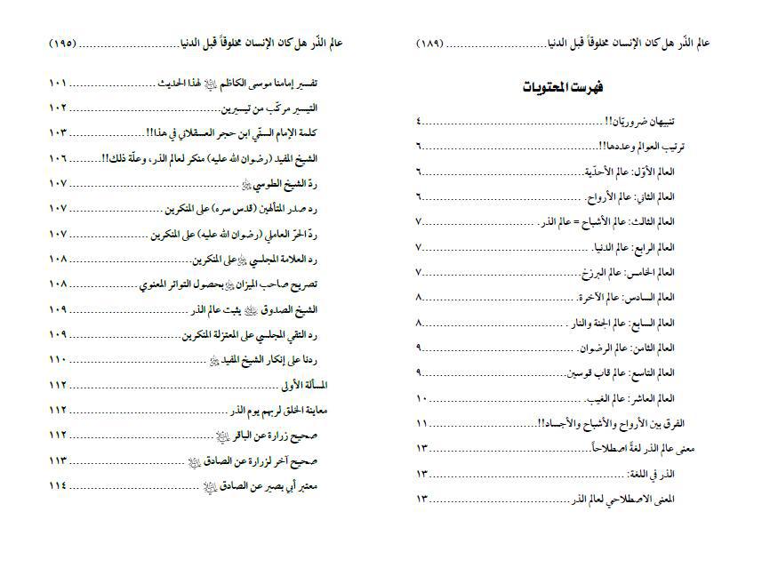 | 3 | عالم الأشباح (الذر) | عالم تم فيه أخذ الميثاق الإلهي. |