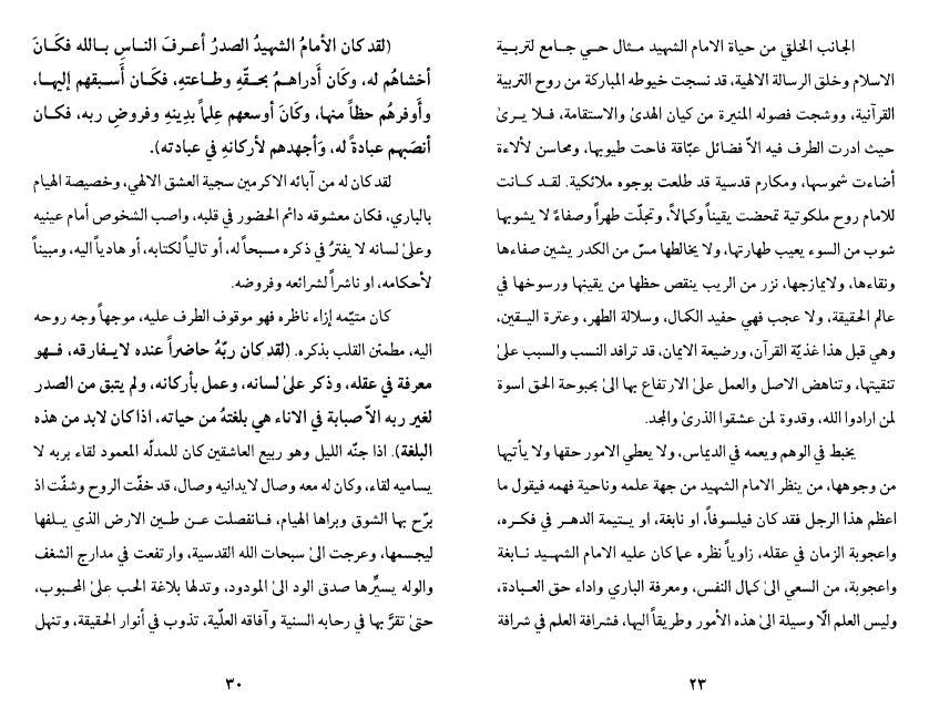 من خلال الصفحات المعروضة، تتكرر سمات في وصف الشهيد الصدر: